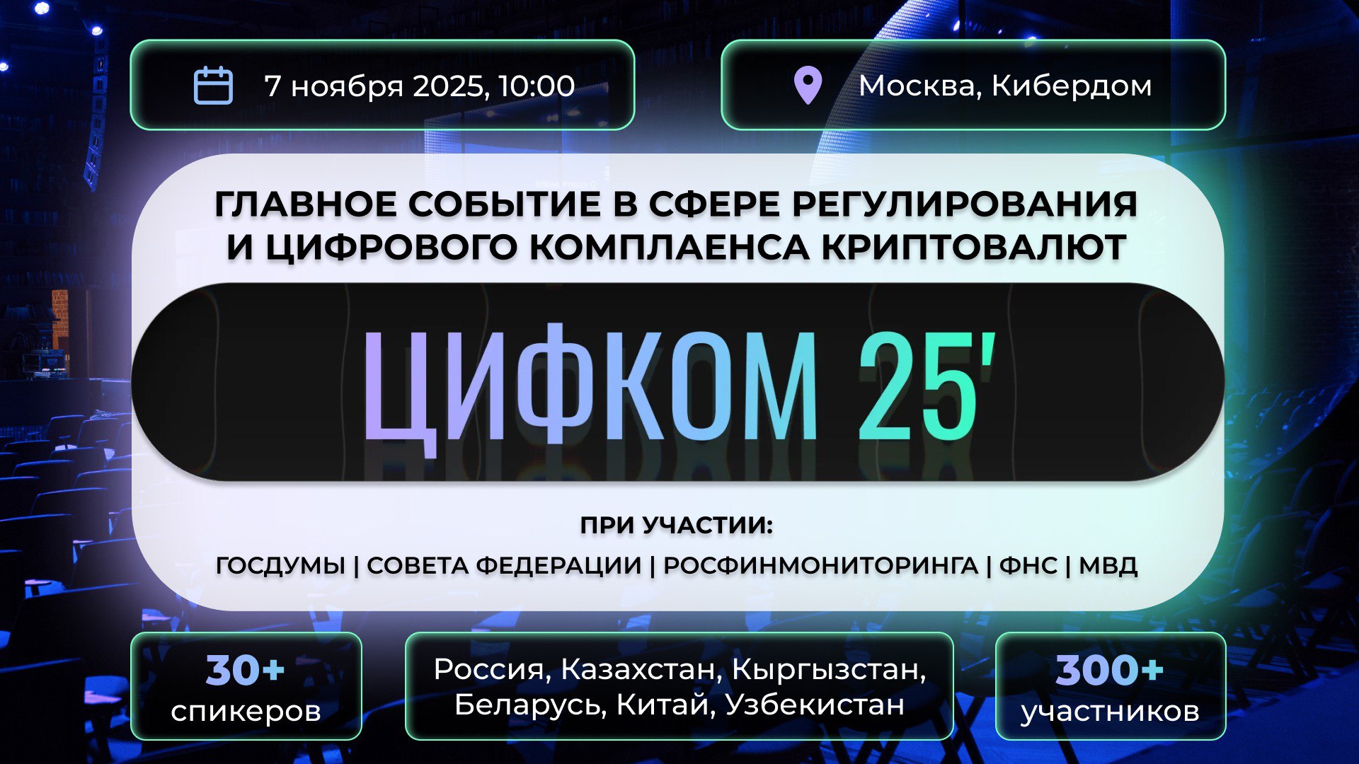 ● 30+ спикеров: представители бизнеса, банковского сектора, криптоиндустрии, юридического сообщества и государственных структур;