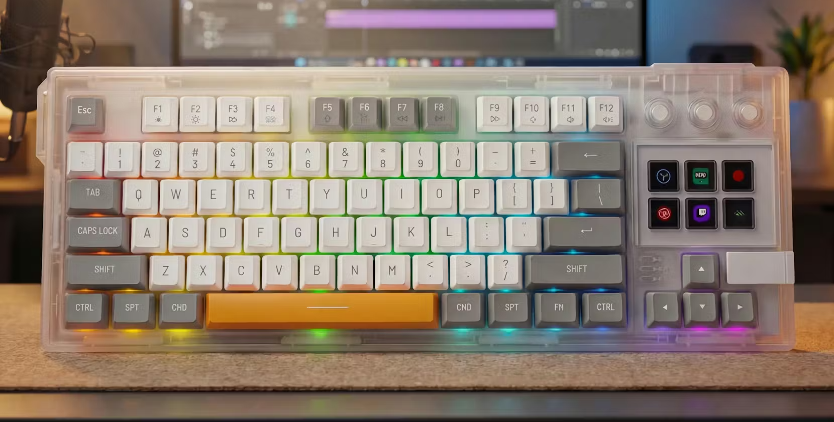 Их можно настраивать под свой стиль и разные задачи. На Kickstarter появилась необычная механическая клавиатура MiraBox K1W. Она выполнена в полупрозрачном корпусе и оснащена шестью программируемыми кнопками с небольшими LCD‑экранами. На них можно выводить текст, иконки и анимации, превращая клавиши в наглядные ярлыки для быстрого доступа к командам. Настройка выполняется через веб‑интерфейс. Пользователь может назначать макросы, создавать сложные сценарии и менять оформление кнопок без установки дополнительного ПО. Изображение: MiraBox Заявлена бесшовная интеграция с различными сервисами. Например, при подключении Spotify кнопки с дисплеями превращаются в панель управления воспроизведением: можно ставить треки на паузу, переключать их и получать визуальную обратную связь прямо на клавишах. Изображение: MiraBox Клавиатура поддерживает проводное и беспроводное подключение. Также есть RGB‑подсветка с 15 эффектами на выбор и горячая замена переключателей. Производитель подчёркивает, что её в конструкции используется силиконовое основание и внутренняя шумоизоляция, благодаря чему она остаётся устойчивой на столе и работает очень тихо. Изображение: MiraBox MiraBox K1W оценили в 109 долларов (≈8 800 рублей). Первые поставки обещают в мае. В Bloomberg раскрыли, когда выйдет полностью безрамочный iPhone — уже скороApple объявила даты конференции WWDC 2026 — на ней покажут iOS 27